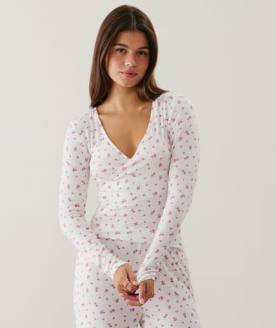 • T-shirt cache-cœur en pointelle motifs fleurs;