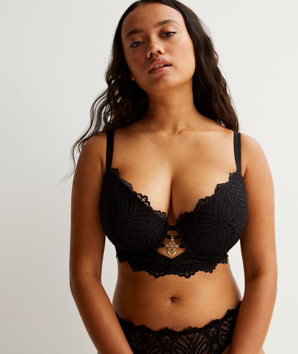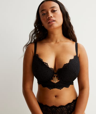• Voorgevormde kanten bustier beha met sieraad - zwart;