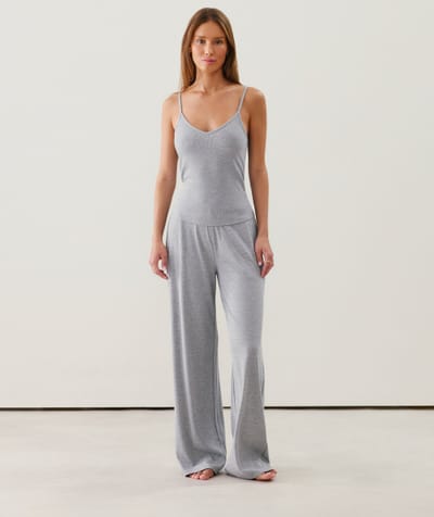 Een pyjamabroek voor dames is een toevluchtsoord als je er even tussenuit bent. Zacht, comfortabel, stijlvol zonder te overdrijven... ze hebben het allemaal. Bij Undiz zijn ze niet... Een pyjamabroek voor dames is een toevluchtsoord als je er even tussenuit bent. Zacht, comfortabel, stijlvol zonder te overdrijven... ze hebben het allemaal. Bij Undiz zijn ze niet alleen voor 's nachts: je kunt ze ook rond het huis dragen, om rond te hangen, te dagdromen of gewoon te relaxen - maar altijd in stijl. Vloeiend, gestreept, met patroon of effen, ze kunnen worden aangepast aan al je cocooning-wensen. Val voor het exemplaar waarvan je zegt: “Oké, hier zit ik goed”. Laat het je favoriete bondgenoot worden.