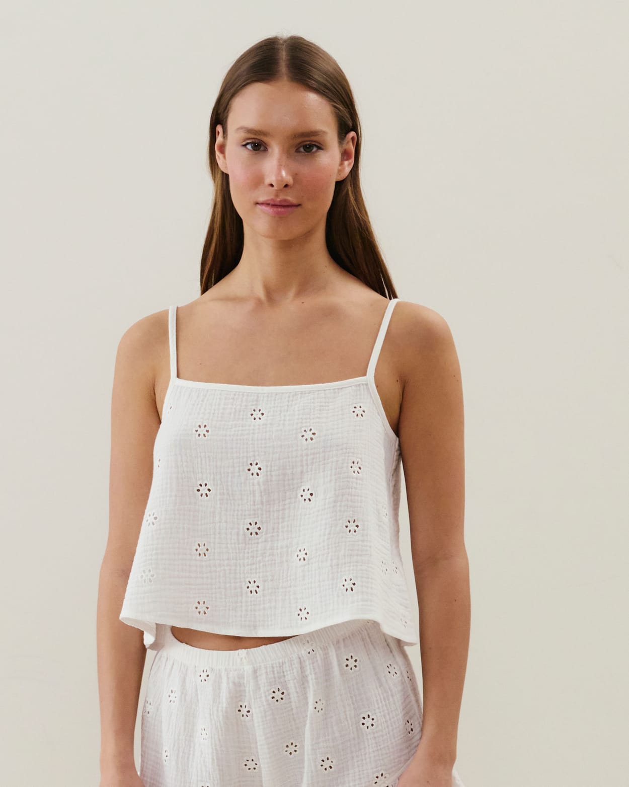 Katoenen top met borduurwerk